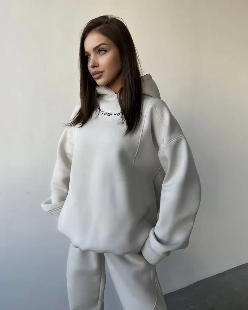 ТЁПЛЫЙ ХУДИ на затяжках, с декоративными рельефами и двойным капюшоном.