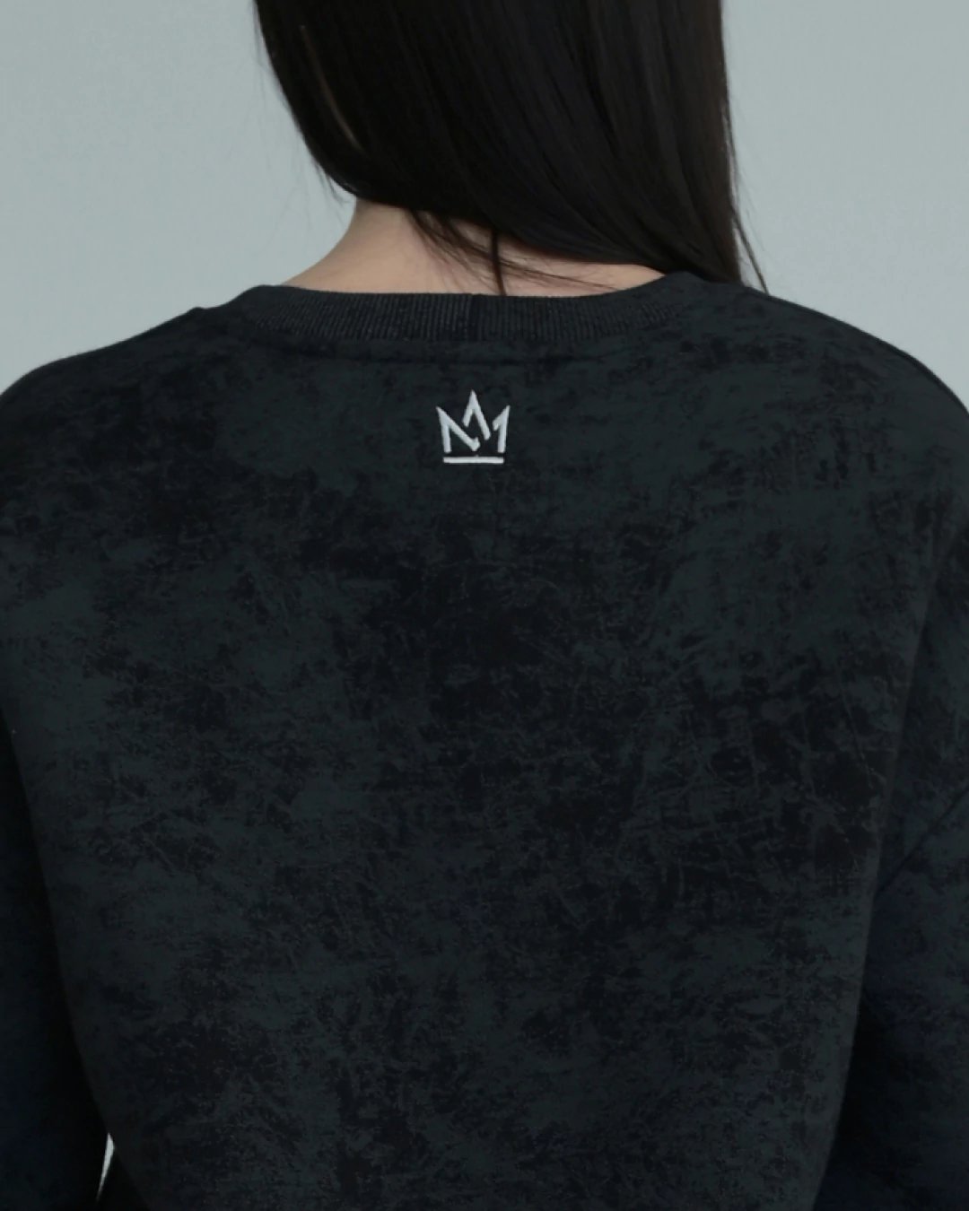 СВИТШОТ со спущенным плечом и декоративными рельефами.