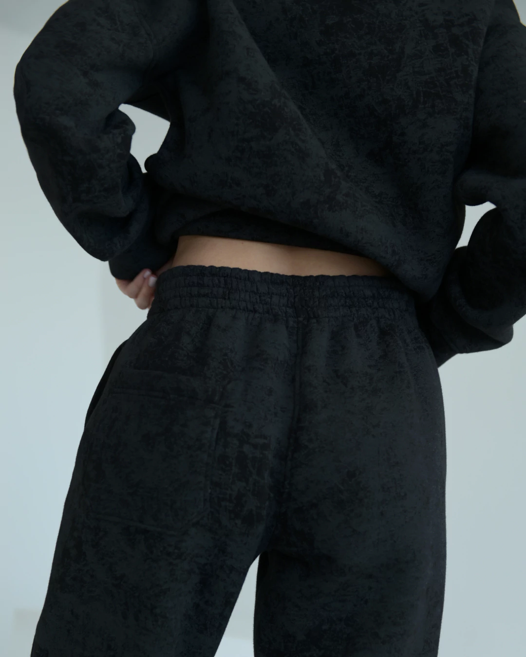 ШТАНЫ-ДЖОГГЕРЫ с цельнокроеным поясом, декоративными рельефами, карманами в боковых швах и накладным карманом сзади (или другая модель штанов).