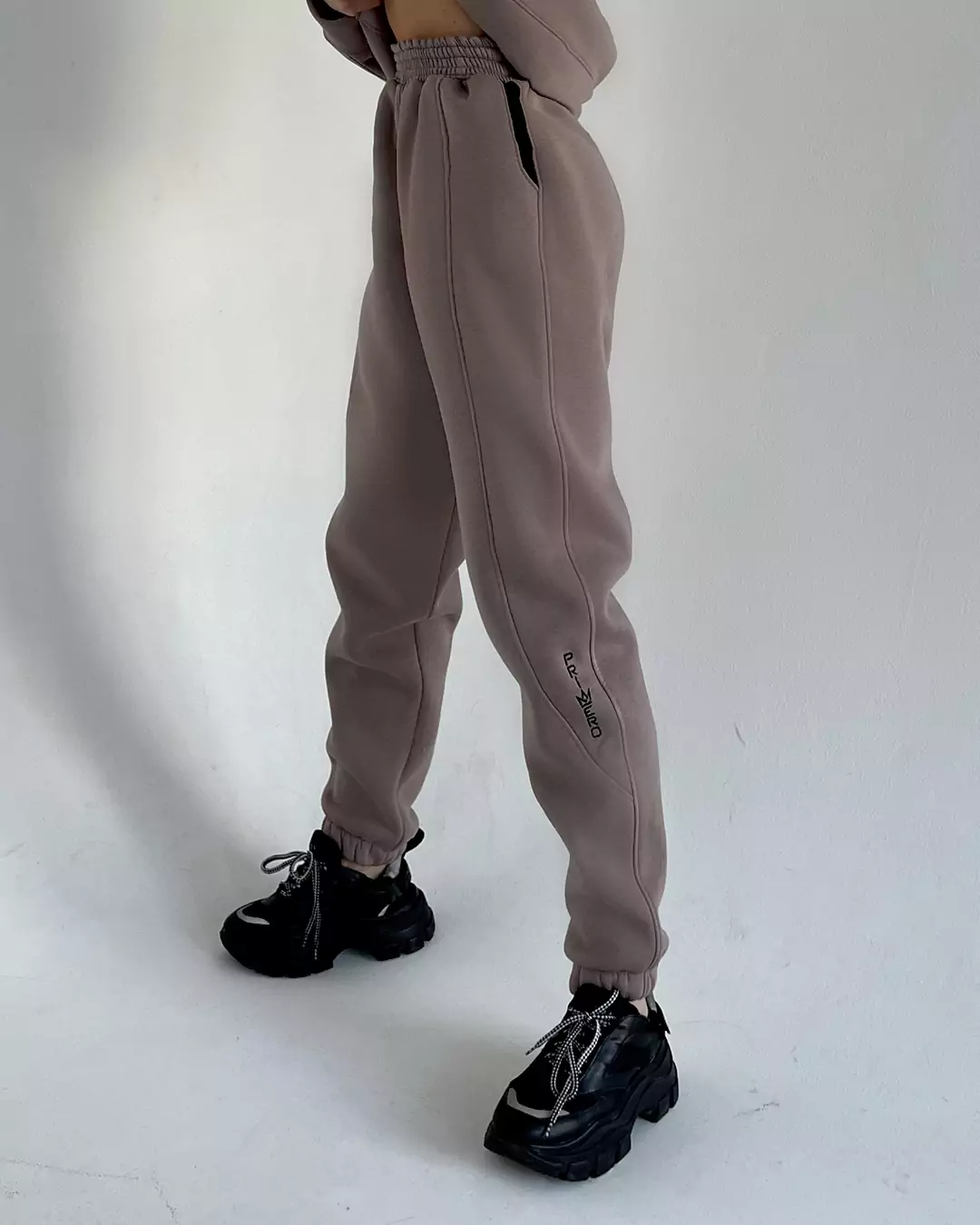 Тёплые женские штаны-джоггеры с декоративными вставками «RAISED»