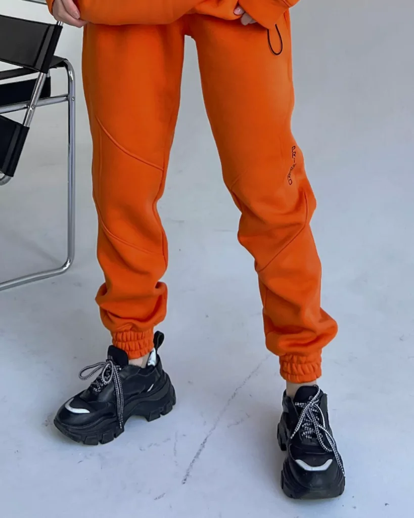 ТЁПЛЫЕ ШТАНЫ-ДЖОГГЕРЫ с притачным поясом, декоративными рельефами и карманами с отрезным бочком.