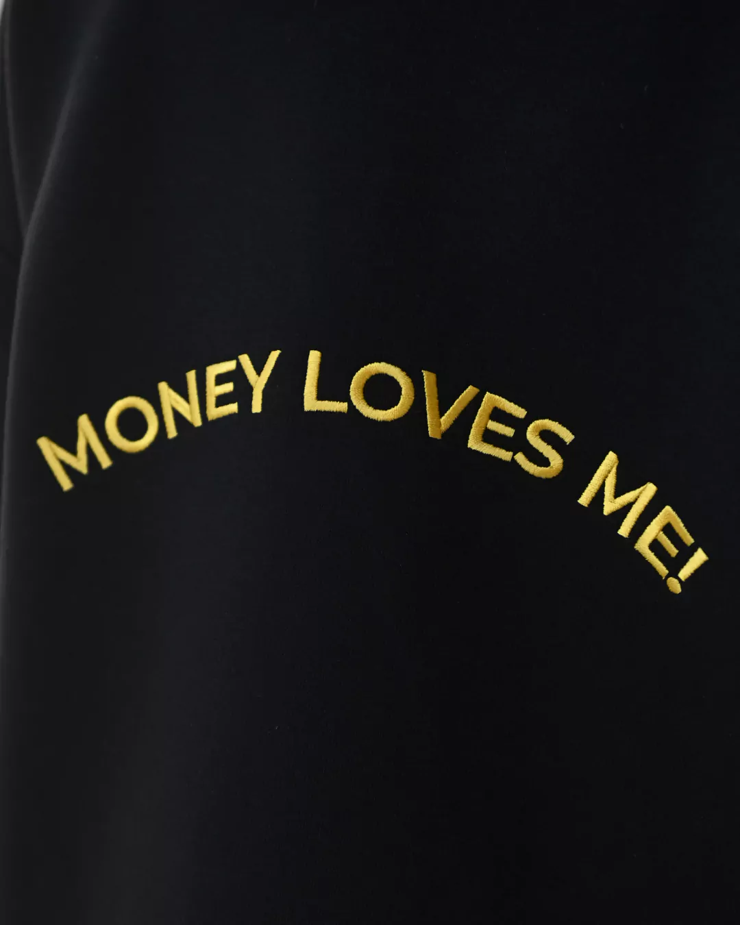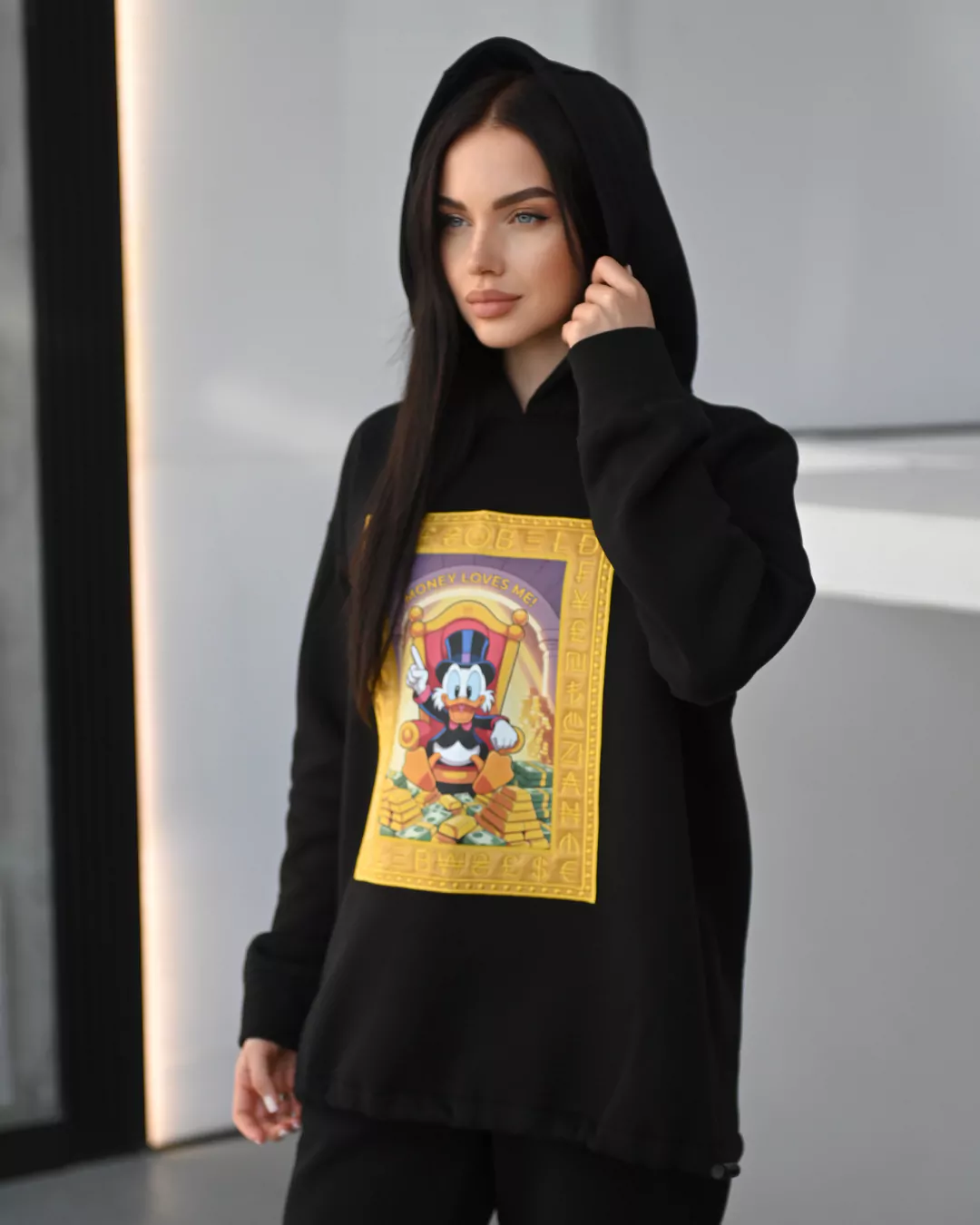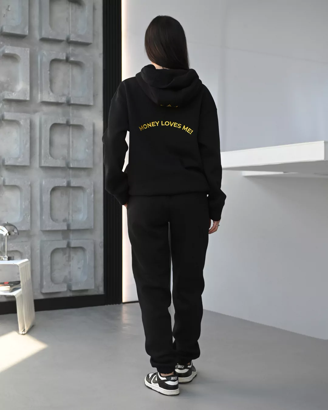 ВЫШИВКА: РАМА со ЗНАЧКАМИ различных ВАЛЮТ на груди, MONEY LOVES ME на спине и КОРОНА на капюшоне (или другие вышивки на выбор).