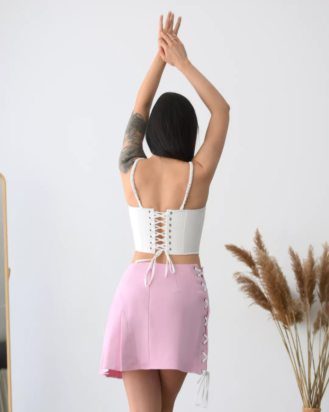 КОРСЕТ со шнуровкой, люверсами и шнурком из основной ткани — ручной работы.