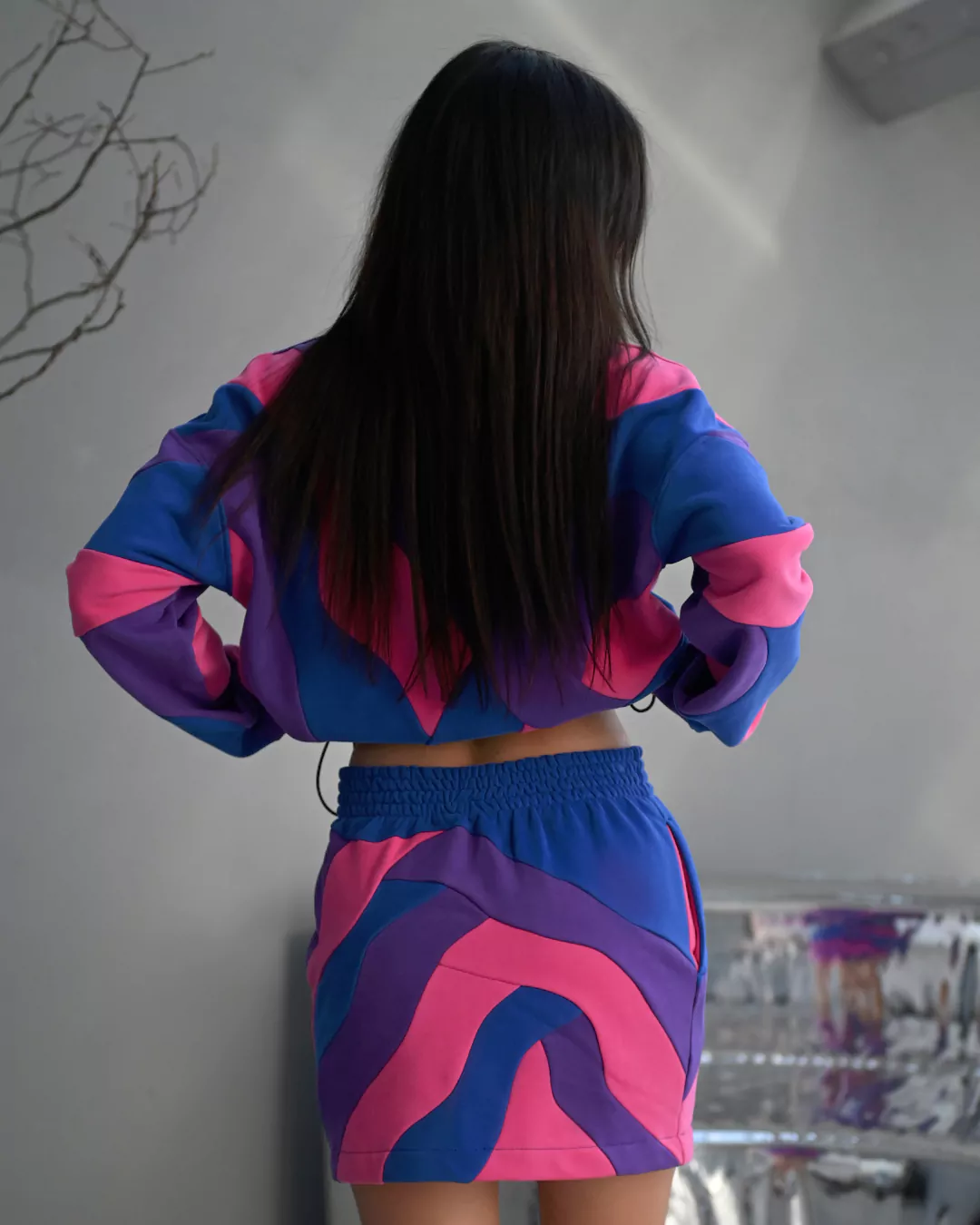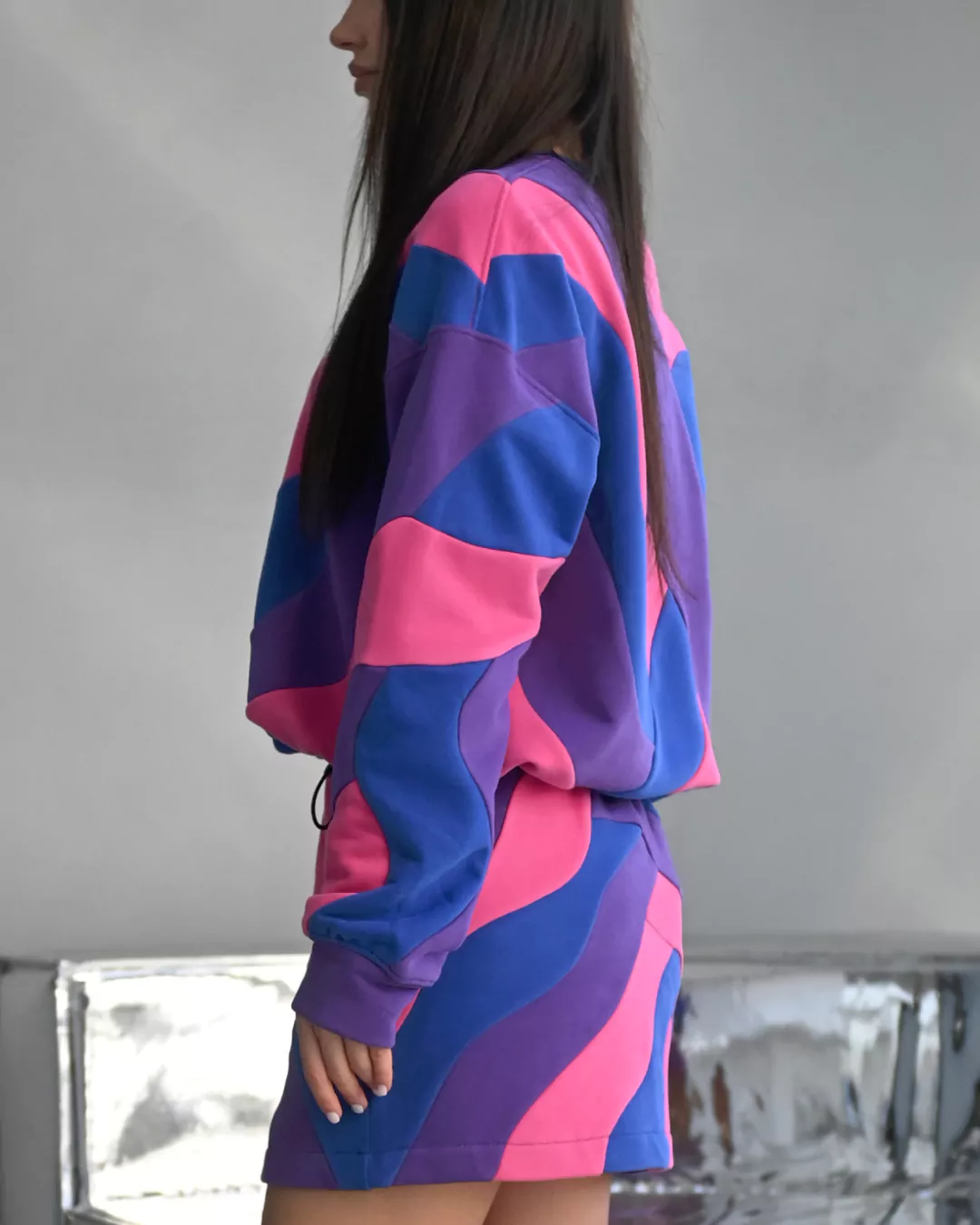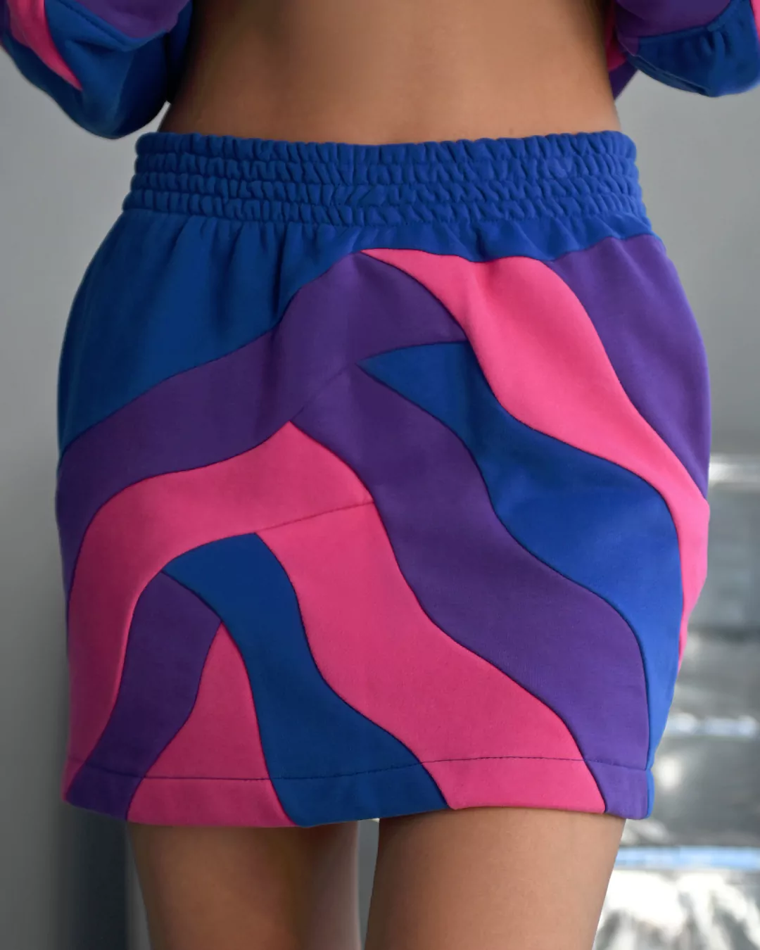 ЮБКА-МИНИ колорблок с цельнокроеным поясом и карманами в боковых швах (или другая модель штанов).