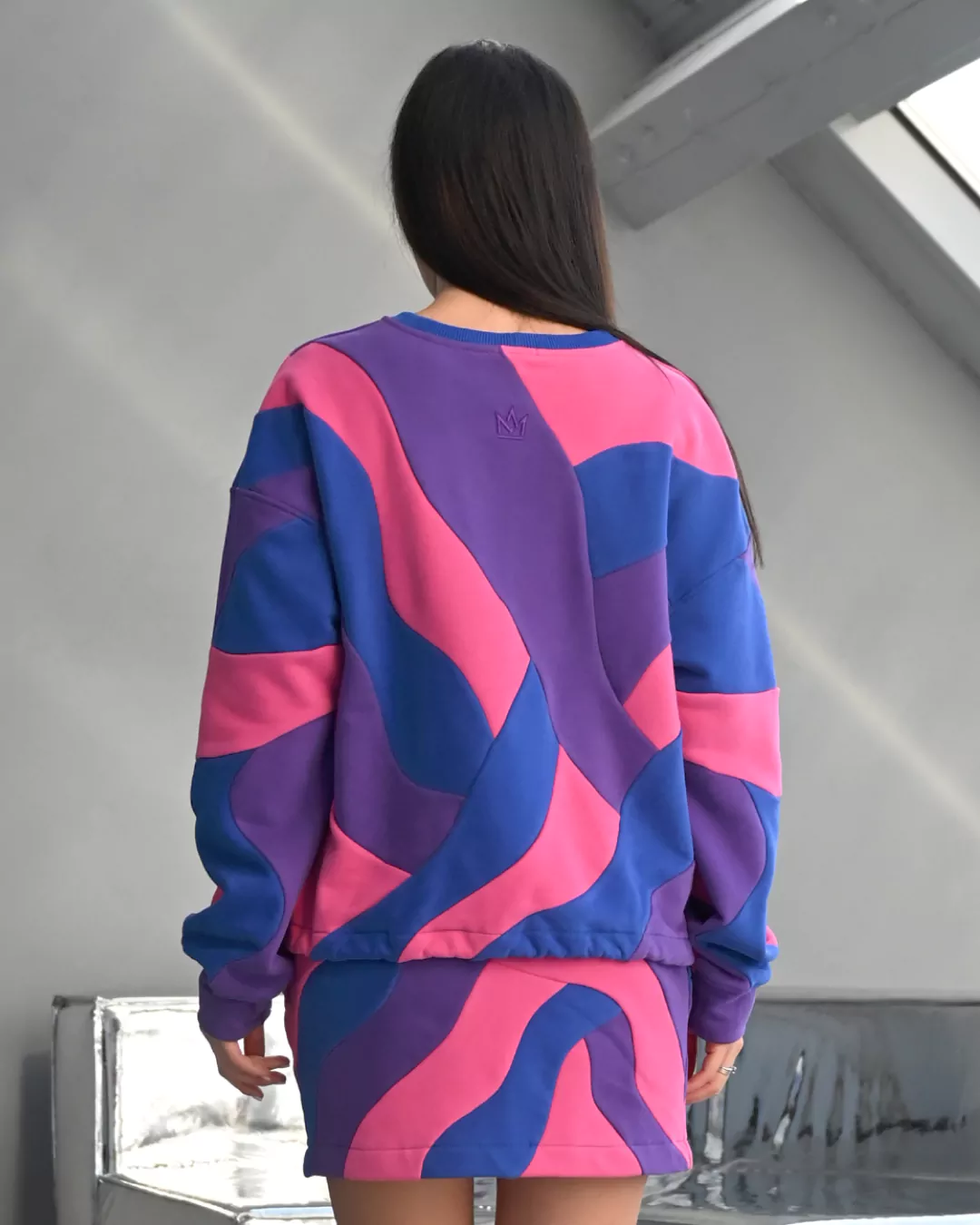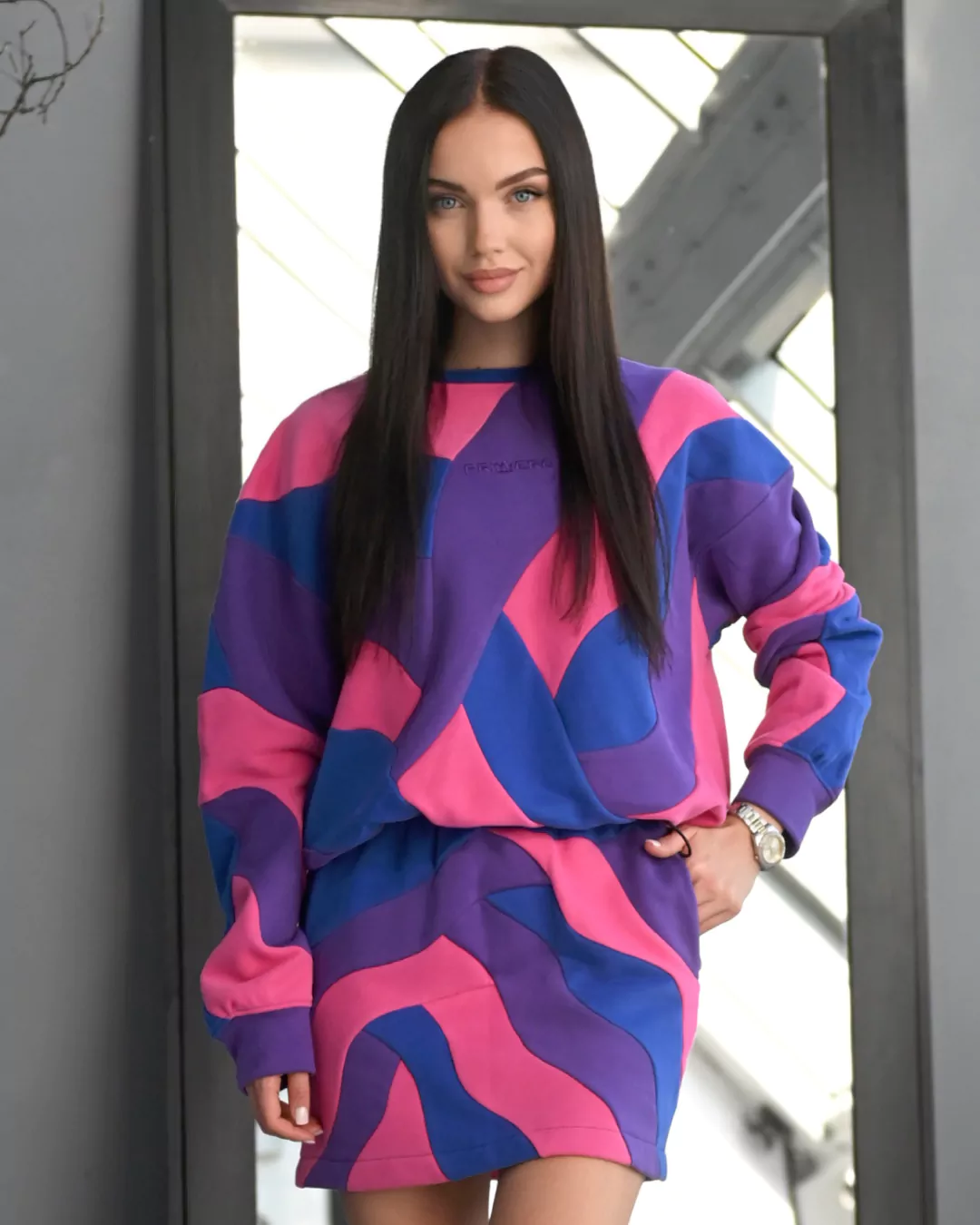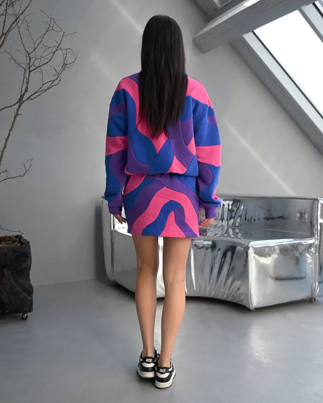 ЮБКА-МИНИ колорблок с цельнокроеным поясом и карманами в боковых швах (или другая модель штанов).