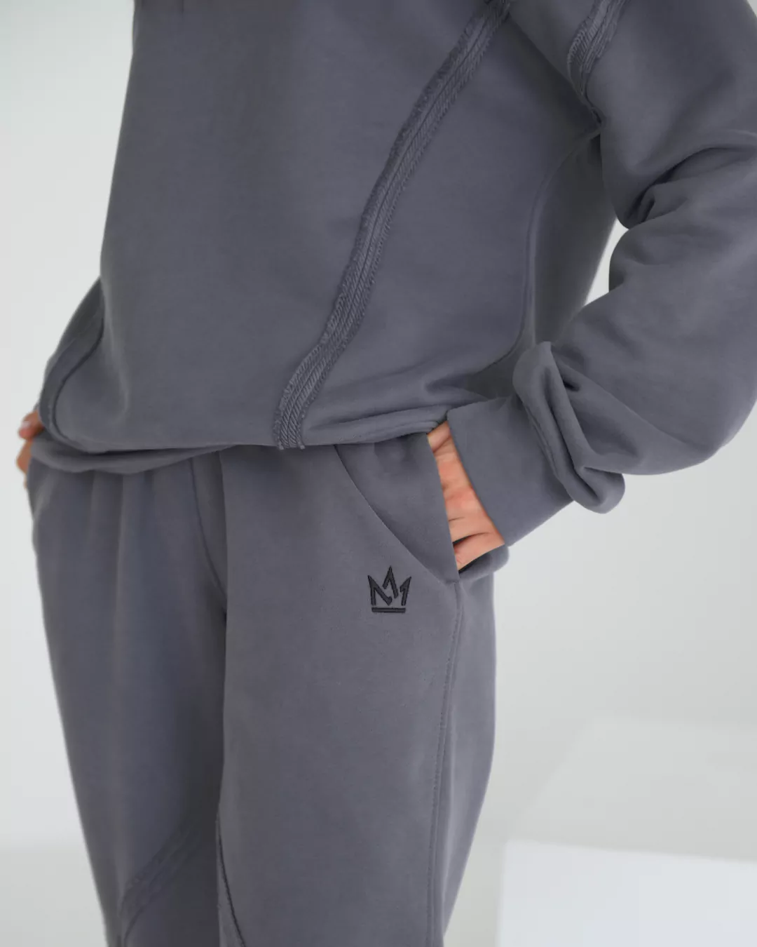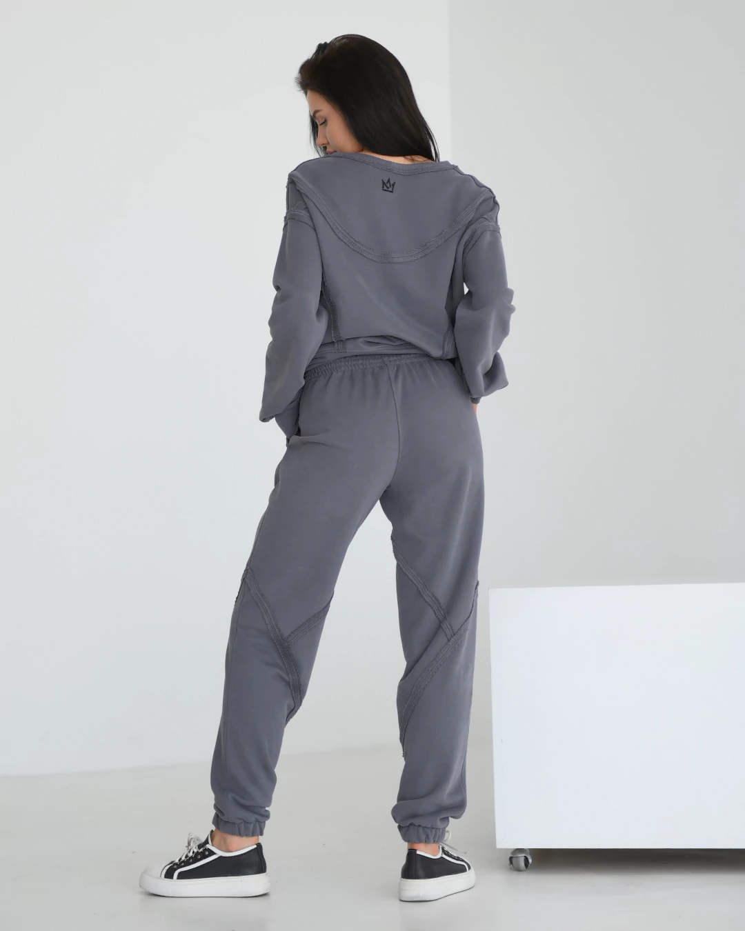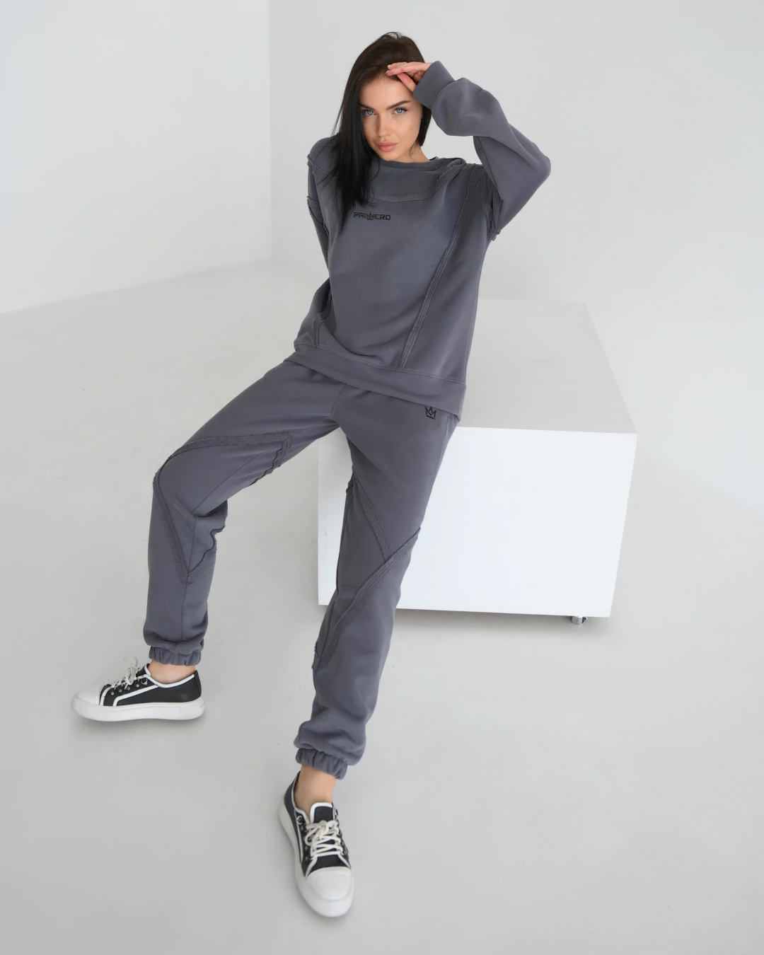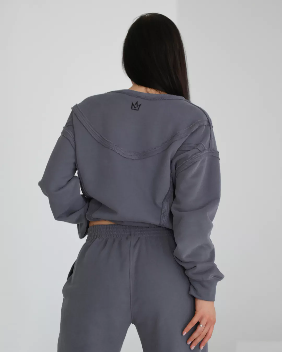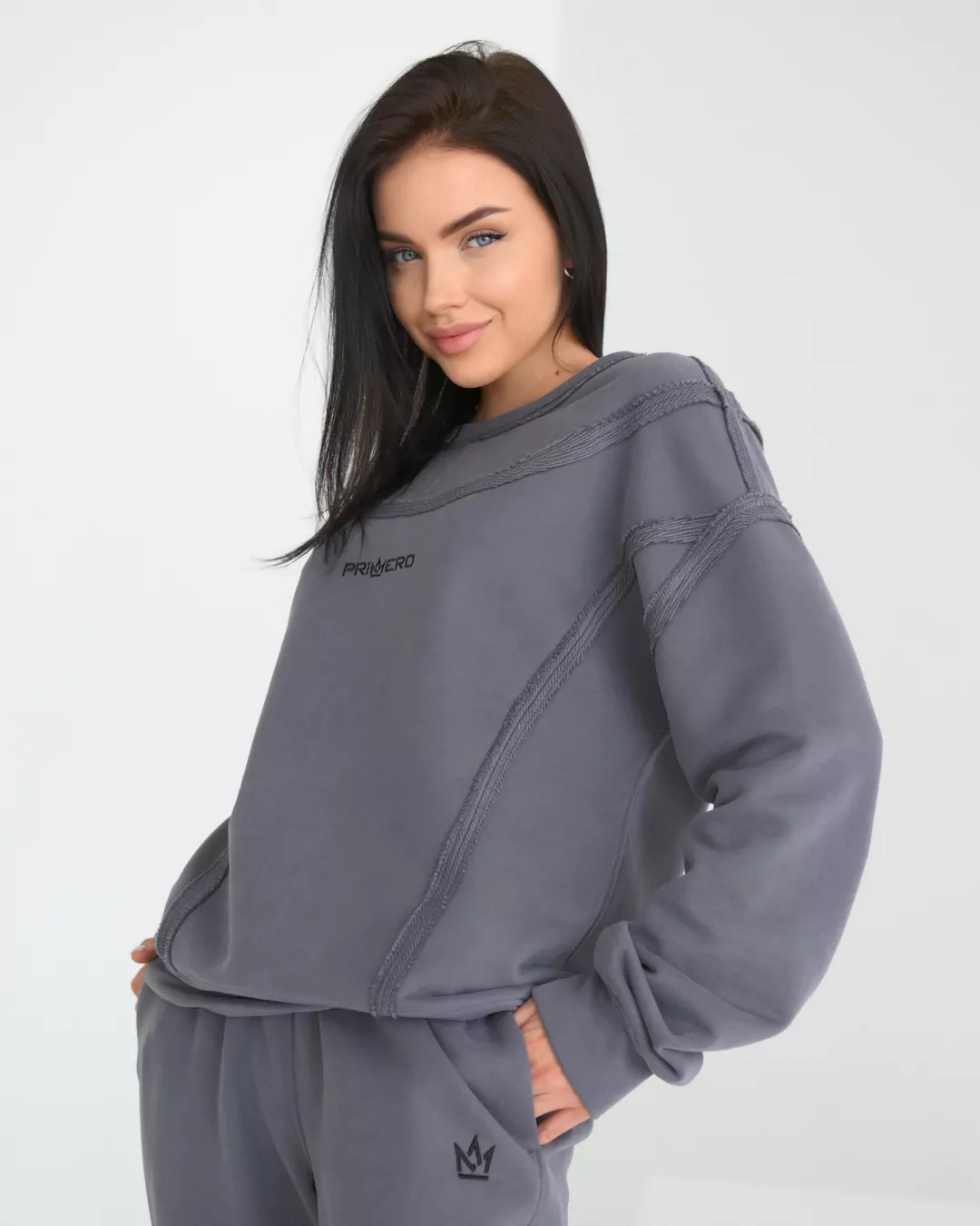 СВИТШОТ с наружными швами и декоративными рельефами.