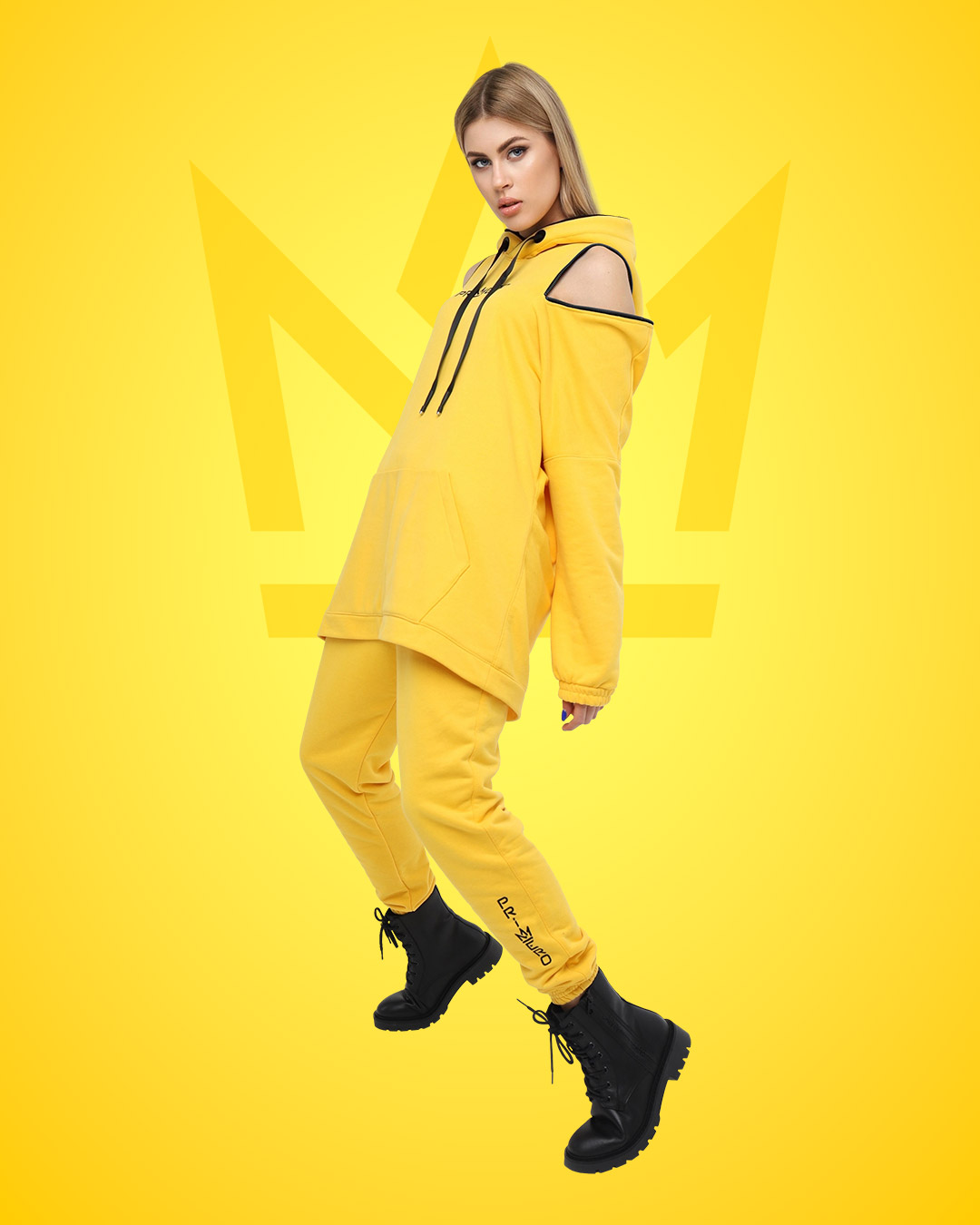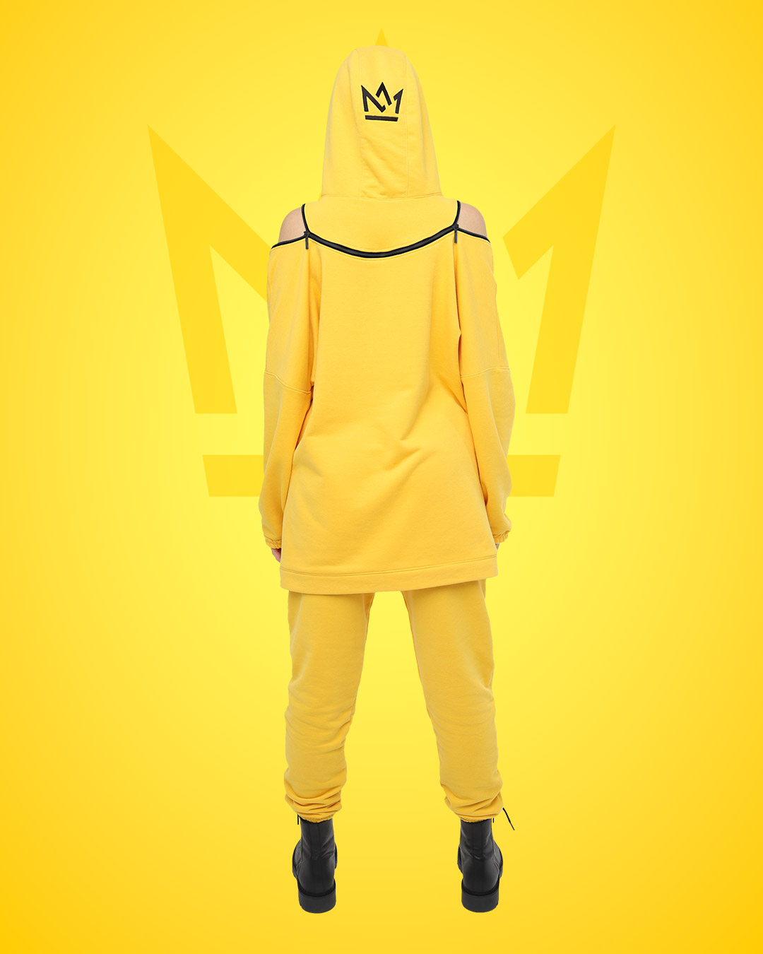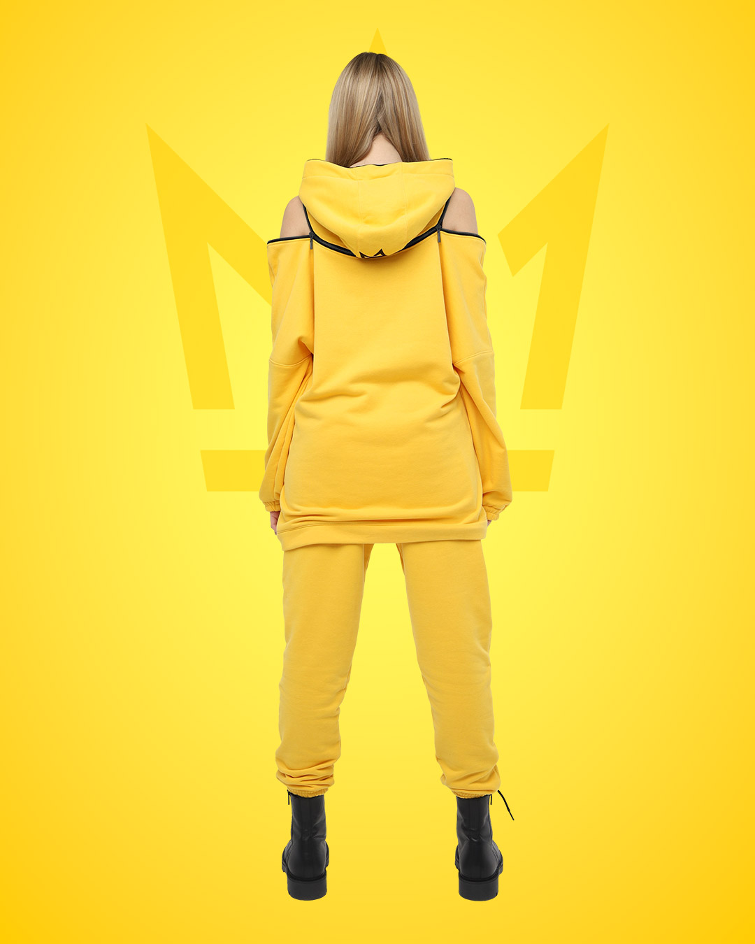 ХУДИ на молнии которая позволяет оголить плечи, с карманом кенгуру и двойным капюшоном.