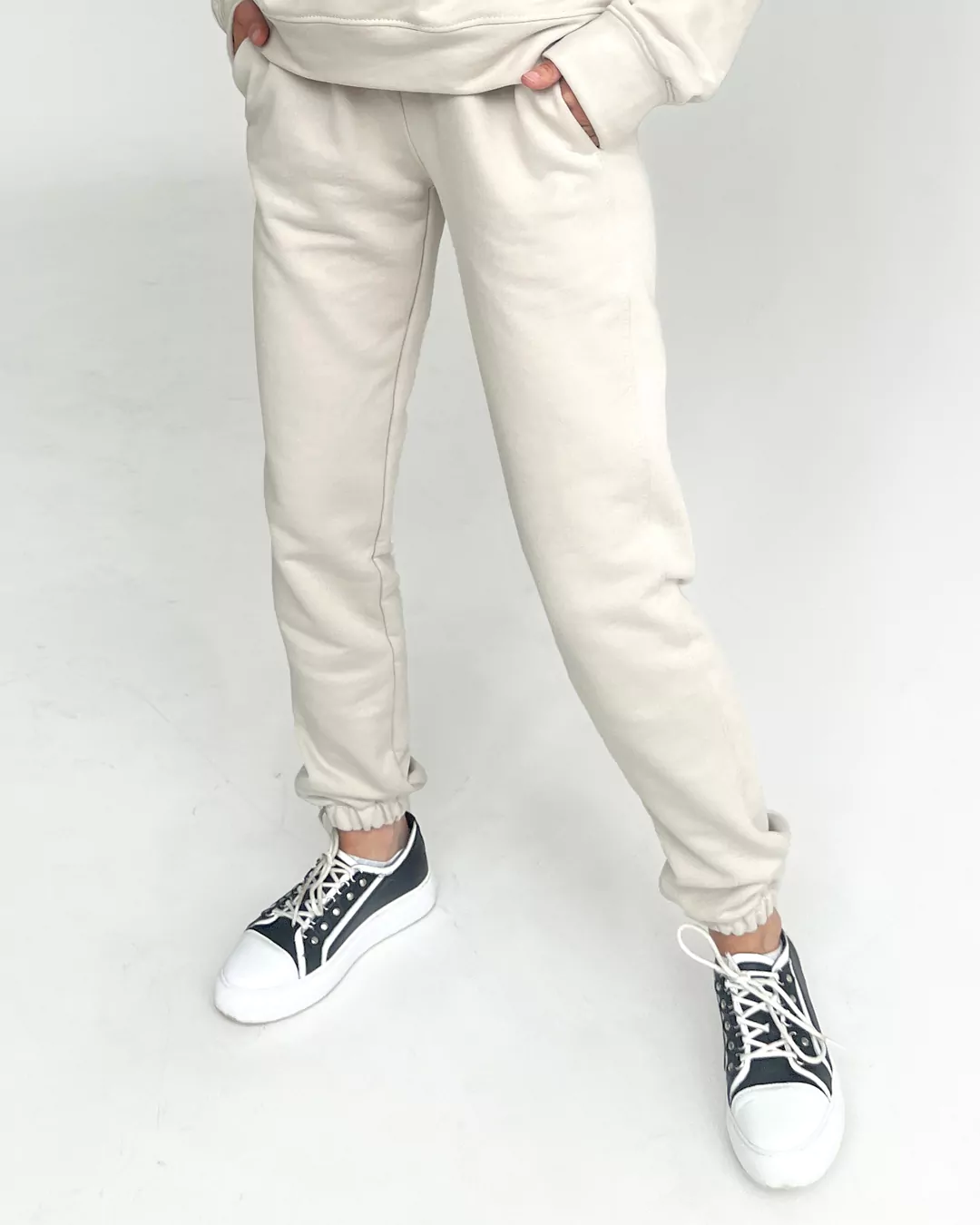 ШТАНЫ-ДЖОГГЕРЫ с цельнокроеным поясом и карманами в боковых швах.