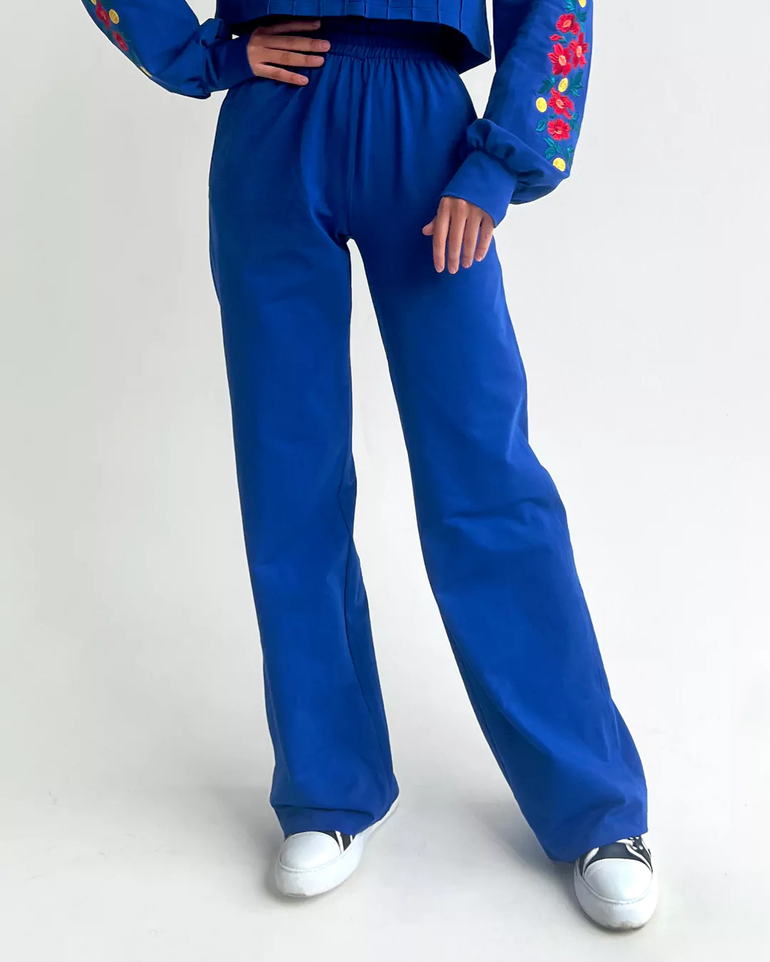 ШТАНЫ-ПАЛАЦЦО с цельнокроеным поясом и карманами в боковых швах.